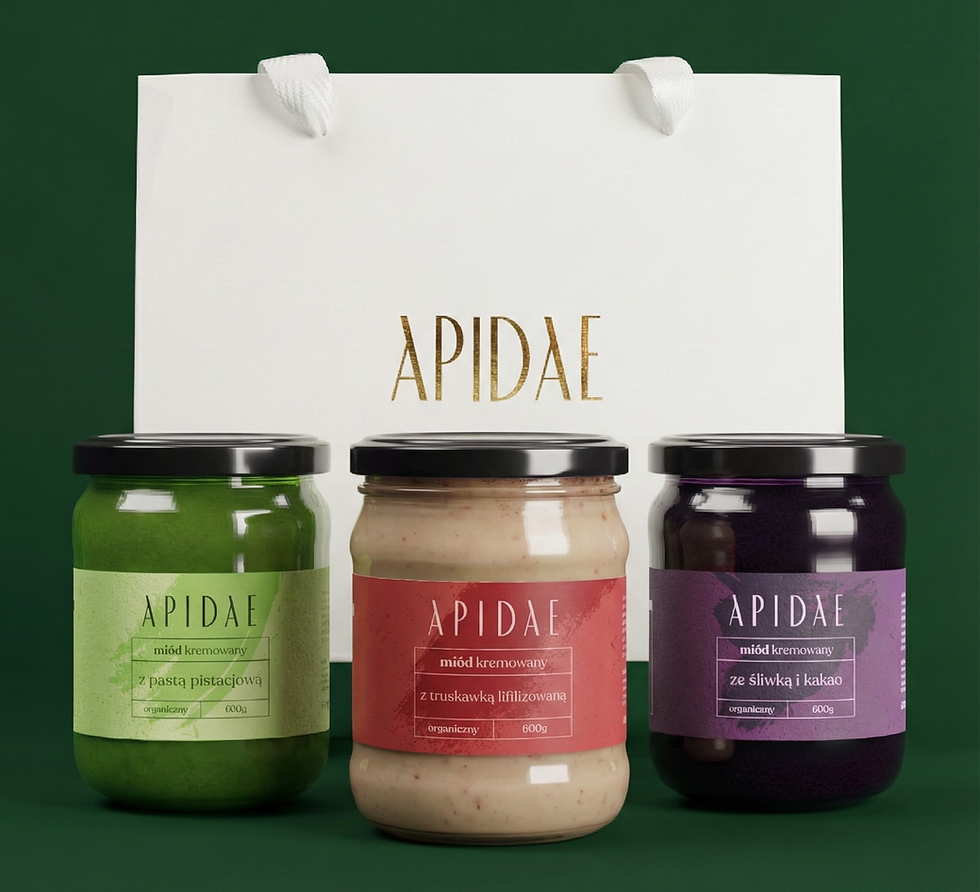 Zestaw trzech miodów kremowanych pistacja, kakao&śliwka, truskawka